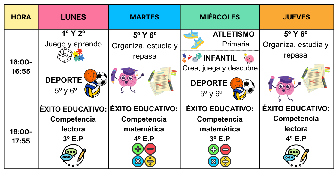 excepto la del ÉXITO EDUCATIVO (3º y 4º EP) que comenzará el MARTES 14 DE OCTUBRE.