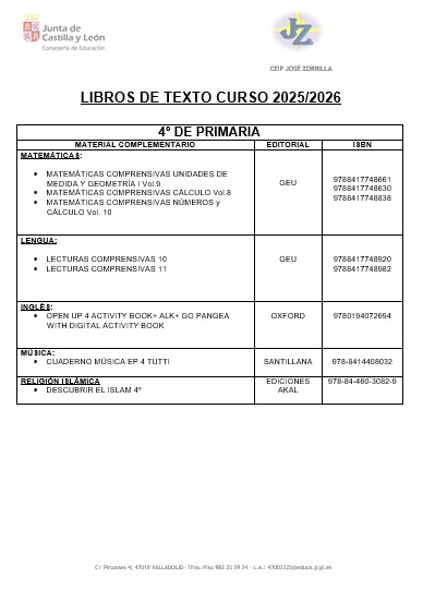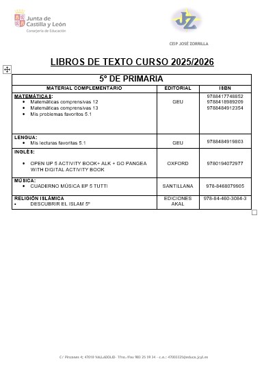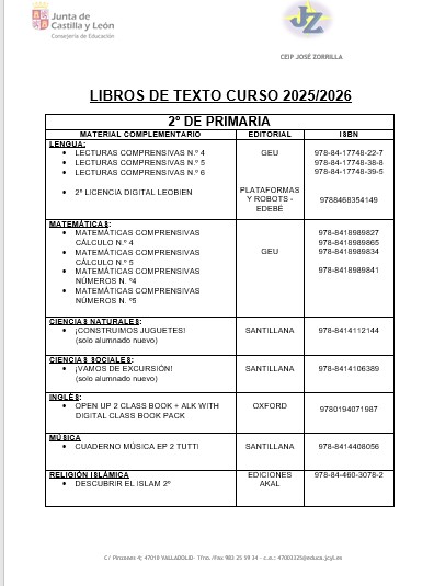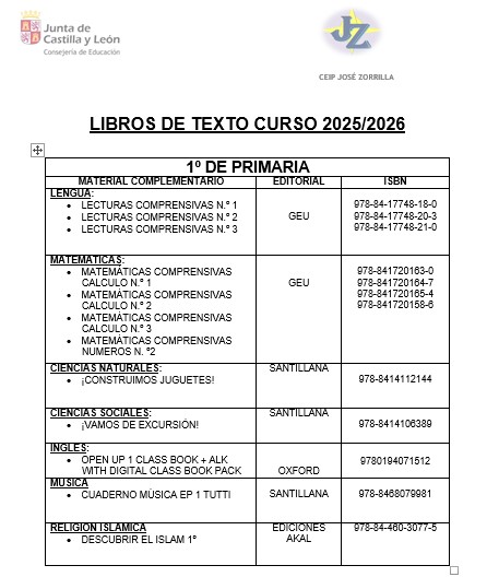LISTADO DE LIBROS 2025/2026